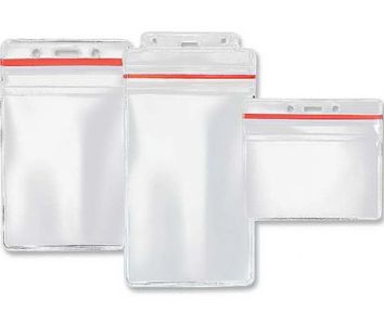 Keep out dirt and moisture with our clear vinyl badge holder with red resealable closure and slot/chain holes. Water-resistant.